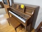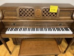Kawai 803M console in a rich pecan finish. Carved legs and a unique music desk make this an uncommon styling, while its 44" height gives it a distinctive tone even compared to other Kawai consoles. A unique model, this is one to try!