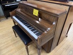 Pre-owned Kimball 4242 console. Rich walnut paneling on the front and sides and straight carved legs with matching inlay give this piano a refined look. Firm but not heavy action and consistent feel make this is great home piano for beginner to intermediate level pianists.