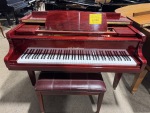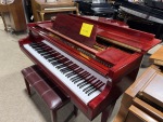 Beautiful and unique! This Baldwin C142 recently arrived and is in excellent condition. Perfect for a smaller home, the bright cherry finish has a distinctred hue, distinct from the typical brown and black shades of most pianos. A well-playing instrument and great statement piece, this is available in our showroom.