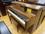 This pre-owned Lowrey console is a perfect budget-conscious choice for a good-sounding and good-quality upright. Gently used when traded-in and now fully serviced, the cabinet is in excellent condition, and the action is smooth and consistent. Tonally rich for its size and relatively balanced, the neutral design also fits well into most rooms. This is a great piano for starter and intermediate pianists alike or those looking for a piece of functional furniture.