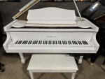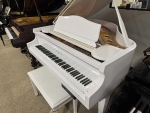 Used Samick baby Grand piano with matching bench in polish white. An excellent preowned value! Perfect size for any space and in an elegant polish white cabinet. We stock over 350 new and used grands for every budget.