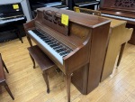 Quality used Wurlitzer furniture console with bench. Includes warranty, full trade program and all our pre-delivery services. Call us for the most recent trade ins and beginner pianos for your home! (317) 582-1946